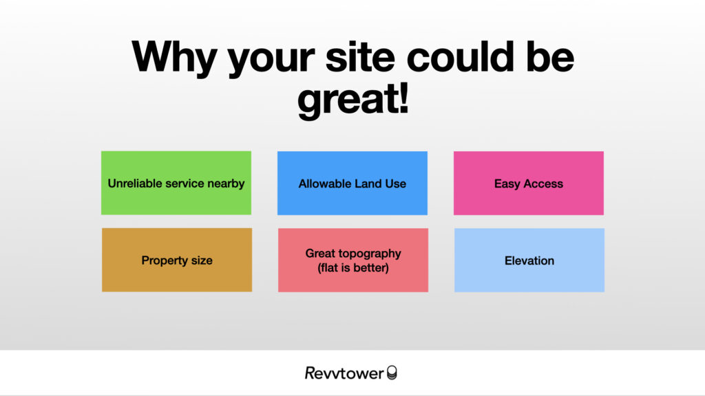 Not every property is suitable for cell tower placement. Wireless carriers look for specific characteristics when identifying potential sites, and understanding these factors can help you assess whether your land is a viable candidate.